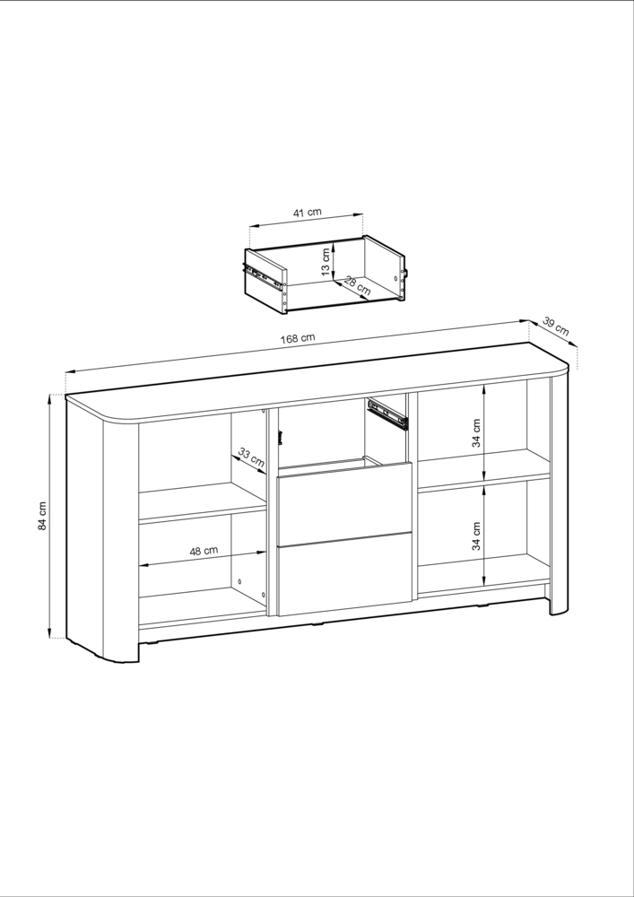 - szerokość 168, wysokość 84, głębokość 39 cm