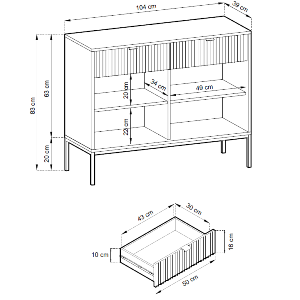 Kolekcja NOVA dostarczy Ci do tego odpowiednich narzędzi! Komoda dwudrzwiowa NOVA to nowoczesna propozycja dla wyrafinowanych użytkowników. Mebel odważnie sięga bowiem po najciekawsze z aktualnych trendów. Ryflowane fronty, które dodają trójwymiarowego efektu czyni z mebla wyrazisty akcent w pomieszczeniu, a geometryczny stelaż ze stali podkreśla charakter całej konstrukcji.