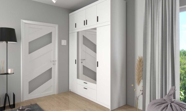 Elena to nowoczesne meble, które idealnie sprawdzą się w zaaranżowaniu sypialni czy garderoby. Korpusy i fronty wykonane zostały z wysokiej jakości płyty meblowej laminowanej. Szeroki wybór szaf oraz nadstawek pozwoli stworzyć funkcjonalne kompozycje. Wnętrza szaf zostały wyposażone w półki, szuflady oraz drążki. Dodatkowym atutem są lustra na frontach, które doskonale sprawdzą się w przestrzennych garderobach, ale i niewielkich sypialniach, które wizualnie powiększą pomieszczenie.