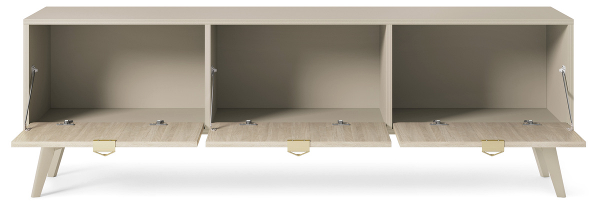 Kolekcję FOREST inspirowana skandynawskim stylem. Łączy łagodne, stonowane odcienie eukaliptusowej zieleni oraz beżu, które wpasują się w nowoczesny i klasyczny wystrój wnętrza. Fronty w dekorze Jodełki Scandi, które zdobią trójkątne złote uchwyty, a całość została osadzona na drewnianych nóżkach w kolorze korpusu.