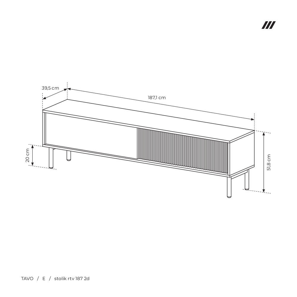 Kolekcja Tavo charakteryzuje się nowoczesnym designem, funkcjonalnością. Wykonanie w kolorze dąb cremona daje naturalny wygląd Twojemu wnętrzu, a fronty MDF wykończone nowoczesnym ryflowaniem nadają meblom elegancji. Drewniane nogi stanowią harmonijne uzupełnienie reszty konstrukcji, wnosząc do wnętrza ciepły, naturalny akcent.